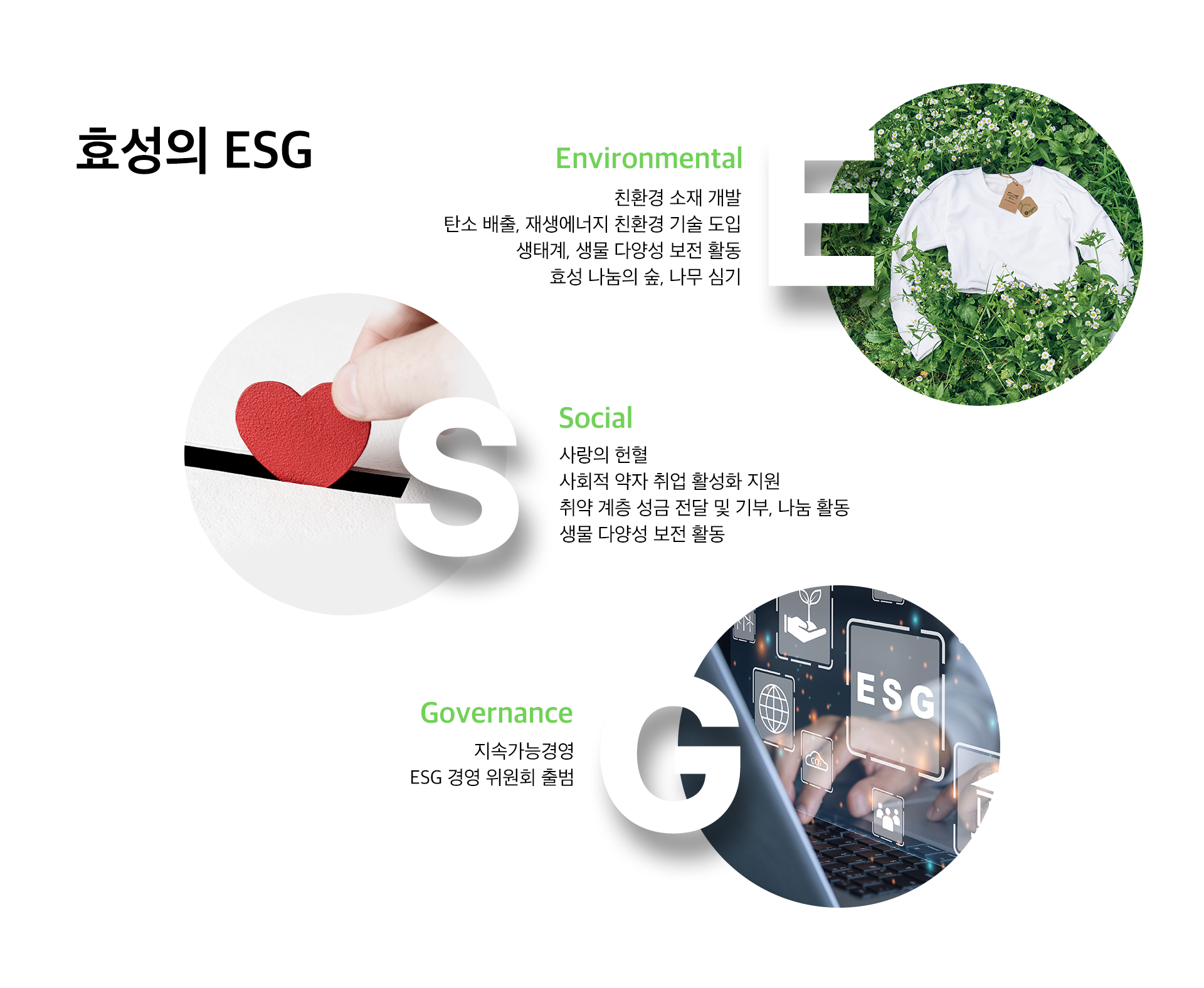 다양한 활동을 통해 효성은 친환경, 사회공헌활동, 투명한 경영을 수행하며 ESG 트렌드를 선도하는 기업으로 나아가고 있습니다.