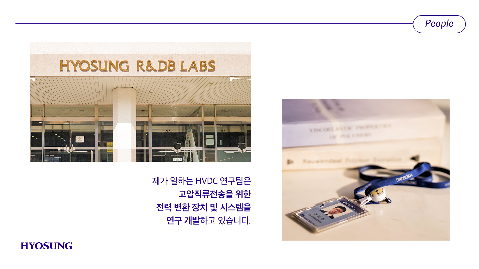 ㈜효성 중공업연구소에서는 STATCOM, HVDC, ESS 등 전력 변환 또는 저장 제품 개발 및 기반 기술 연구를 수행하고 있죠. 그중 저는 고압직류전송을 위한 전력 변환 장치 및 시스템을 연구 개발하고 있습니다.