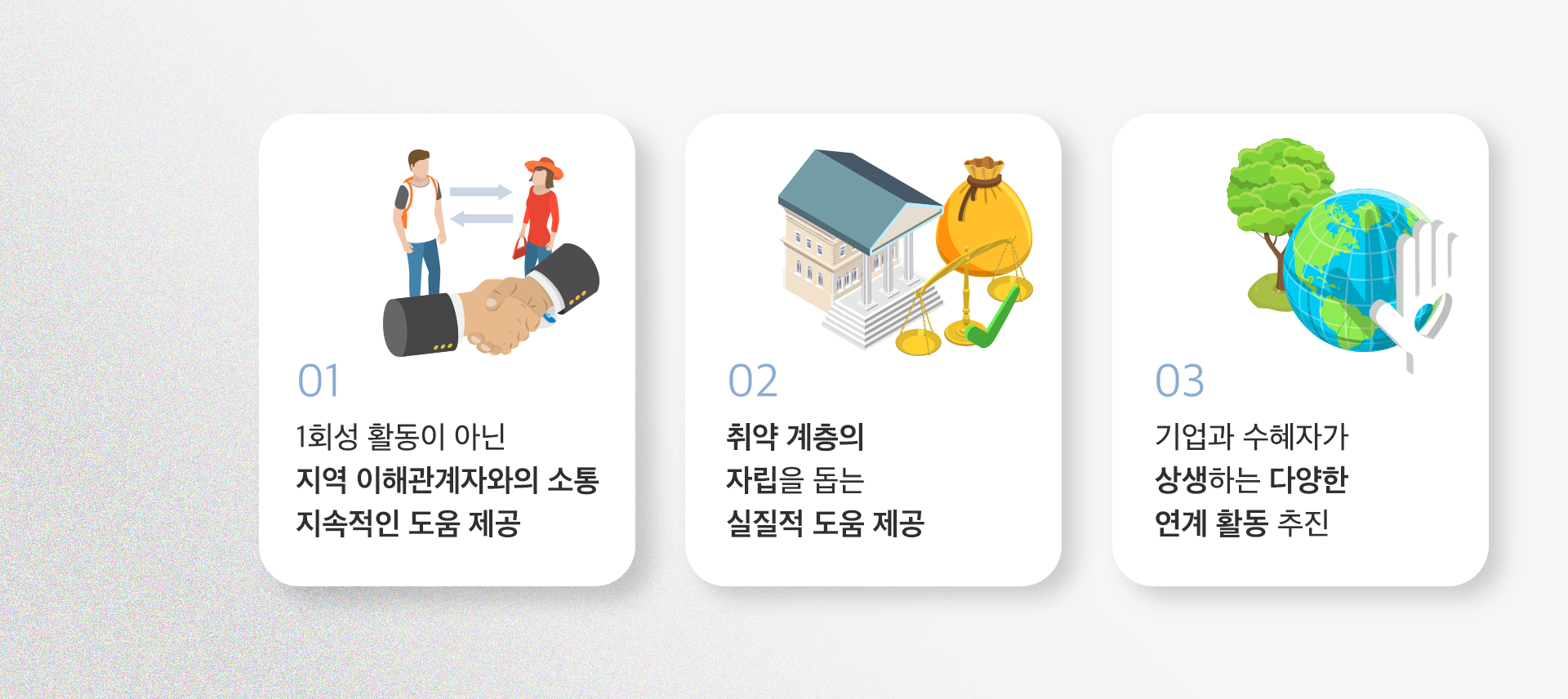 효성은 1회성 행사 위주 활동보다는 지역 이해관계자와 소통을 통해 지속적인 도움을 제공하고자 합니다.