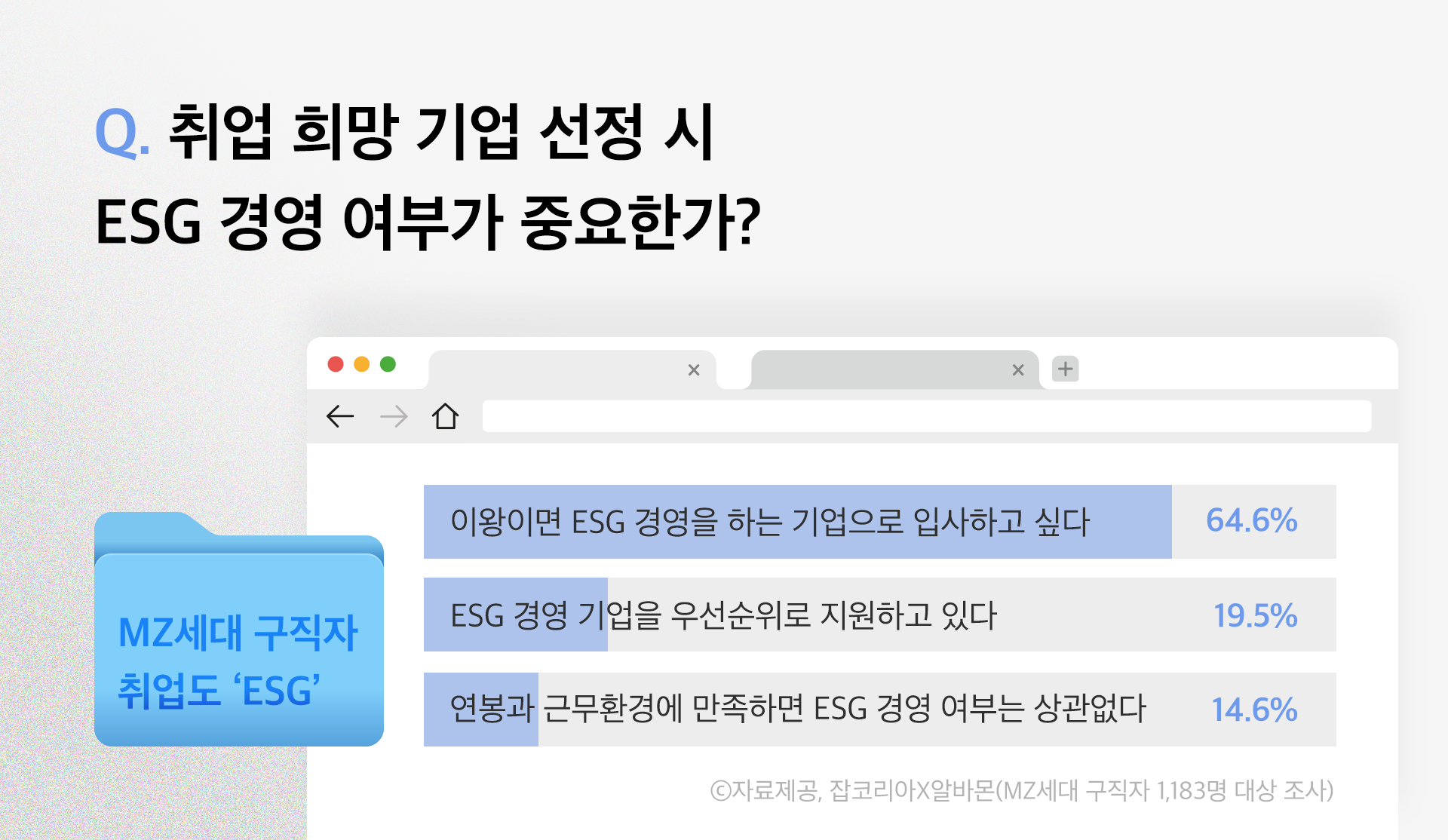 그렇다면, MZ세대 구직자가 ‘ESG 경영 여부’를 중요하게 생각하는 이유는 무엇일까요?