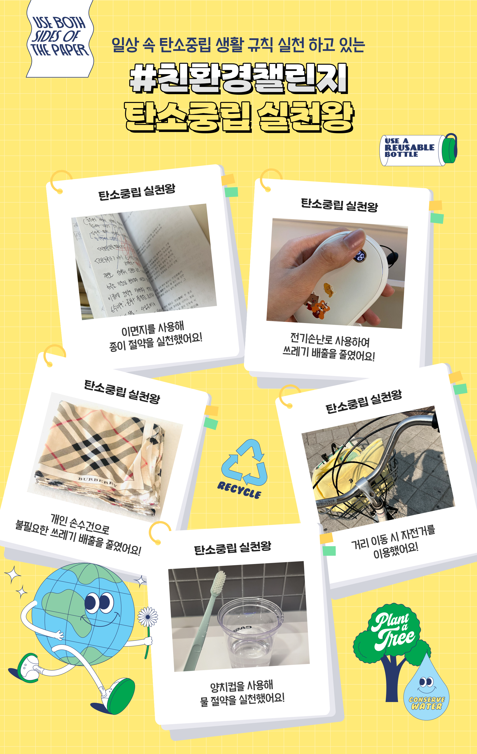 일상 속 탄소중립 생활 규칙을 실천하고 참여해주신 모든 분들께 감사인사 드립니다.