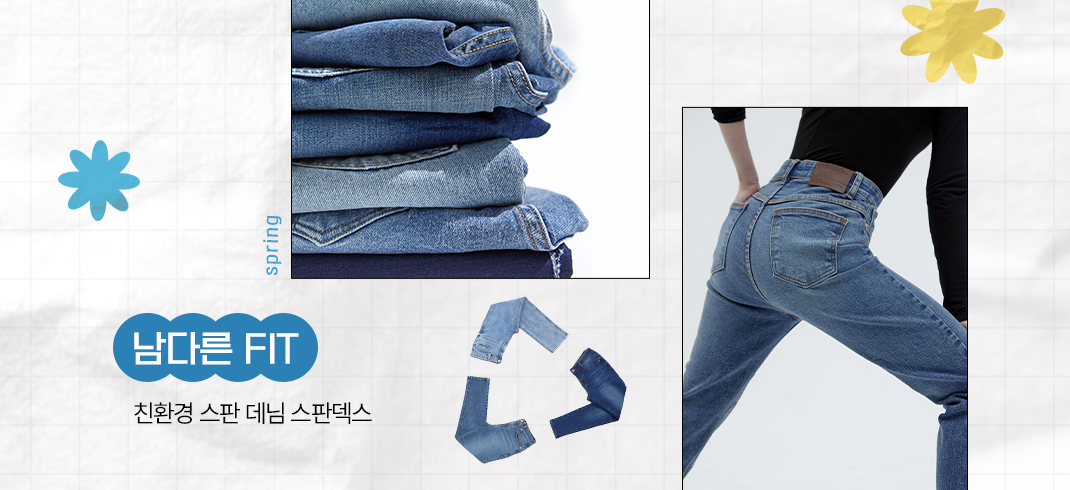 두껍고 뻣뻣한 소재의 데님보다 효성이 개발한 데님 스판덱스와 같은 소재라면 더욱 좋겠죠?