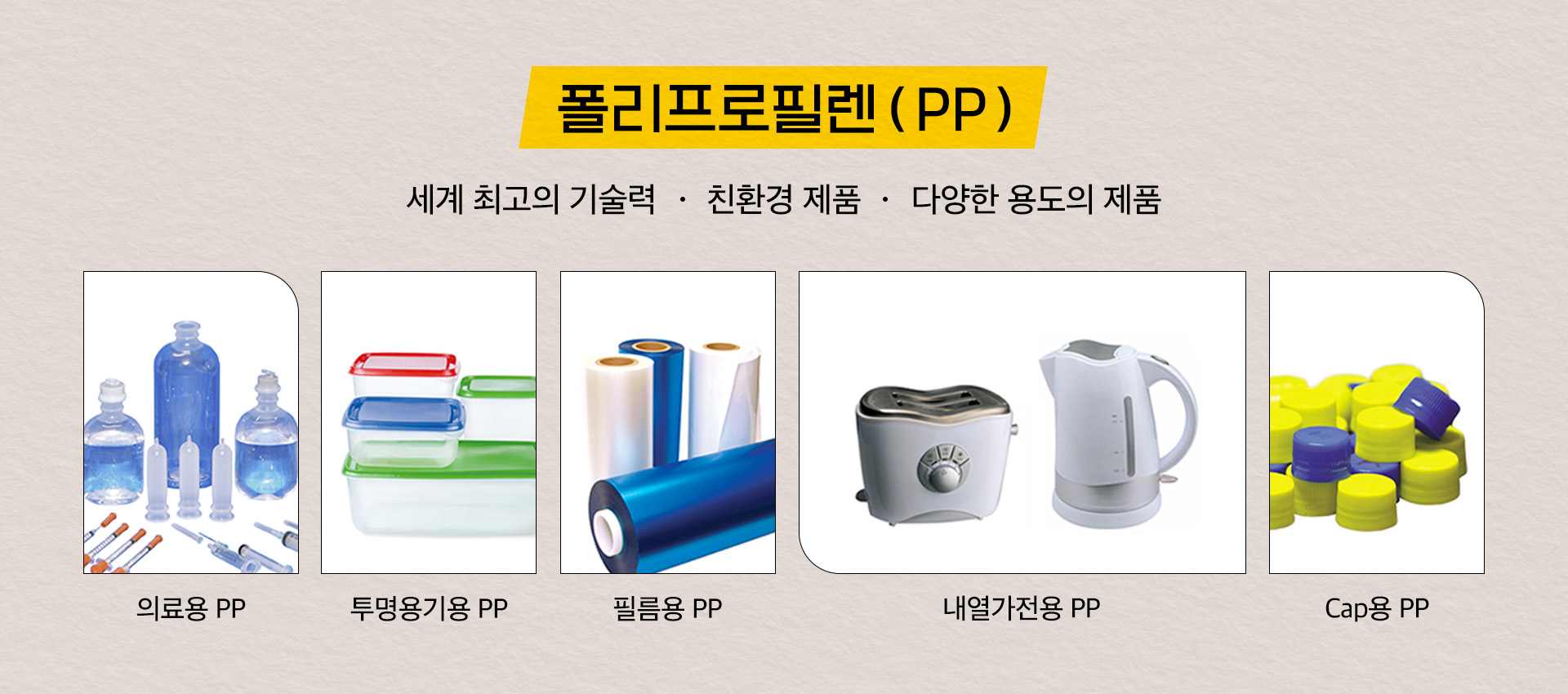 의료용 PP, 투명용기용 PP, 필름용 PP, 내열가전용 PP, Cap용 PP 외에도