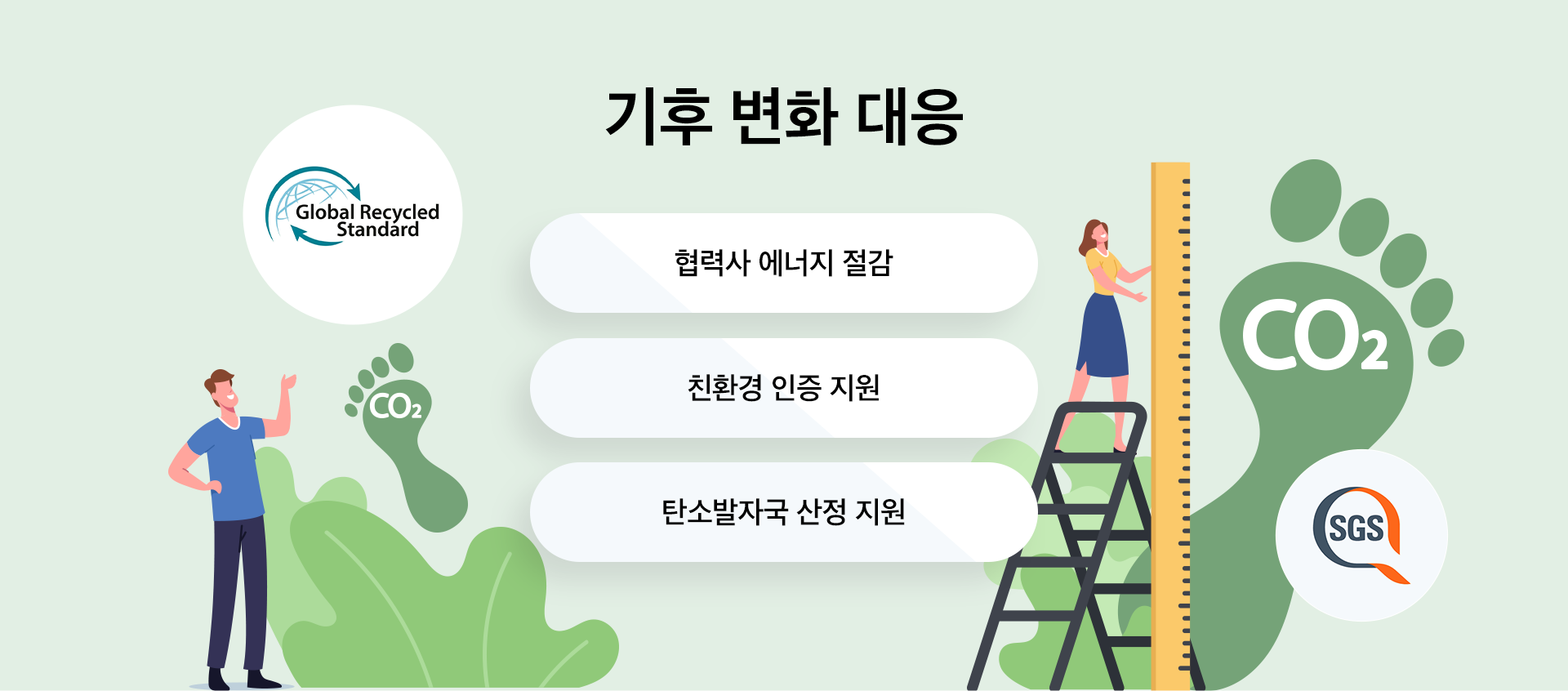 협력사 *탄소라벨링 산정 지원 등 기후 변화에 대응하기 위한 친환경 활동을 하고 있죠.