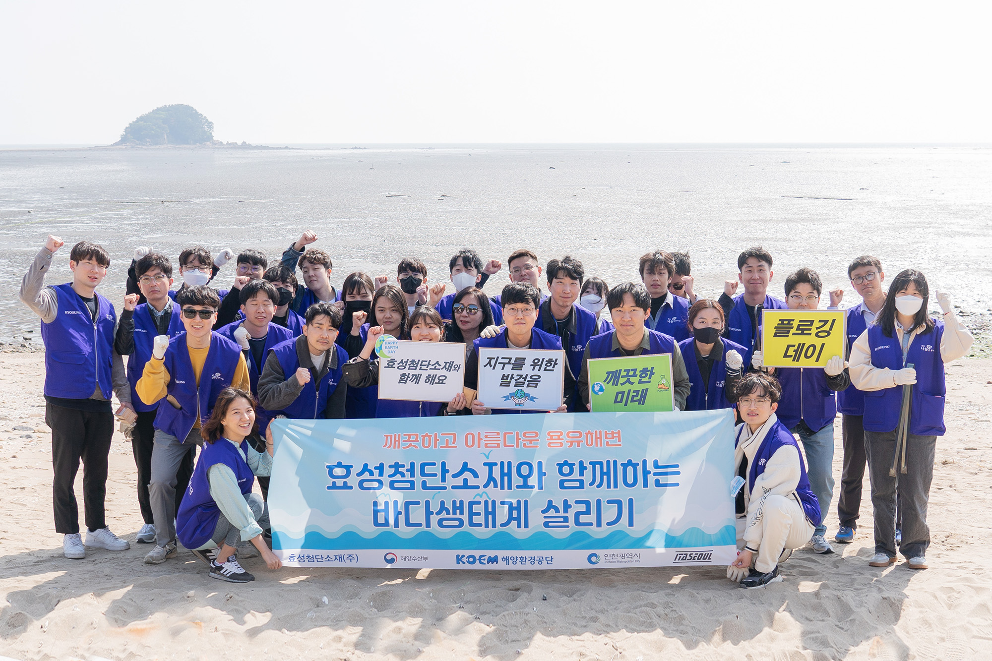 해수부 산하 해양환경공단 주관 사업으로 효성첨단소재는 2022년부터 인천 영종도 용유해변을 입양해 돌봄 활동을 펼치고 있습니다.