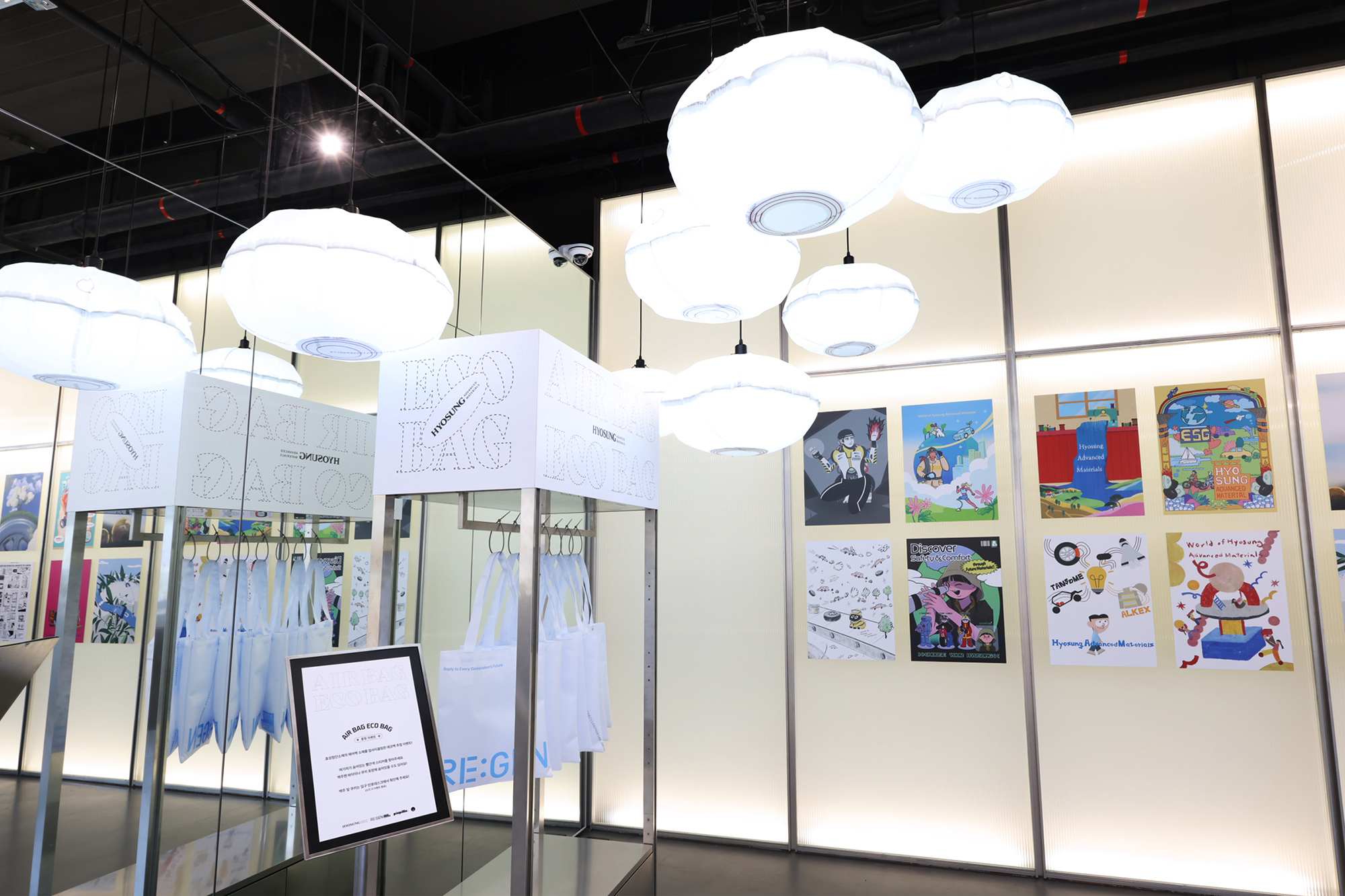 아라미드 제품 외에 효성첨단소재의 에어백으로 만든 조명, 탄소섬유로 만든 기타 등을 체험할 수 있습니다.