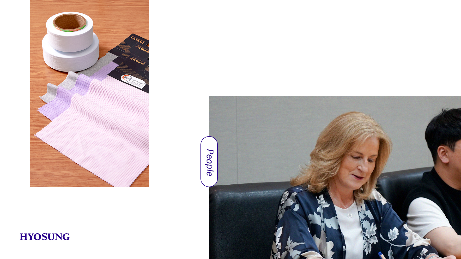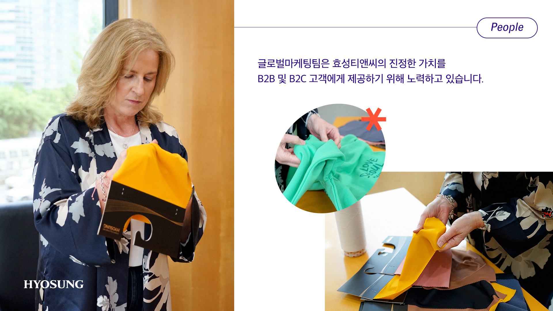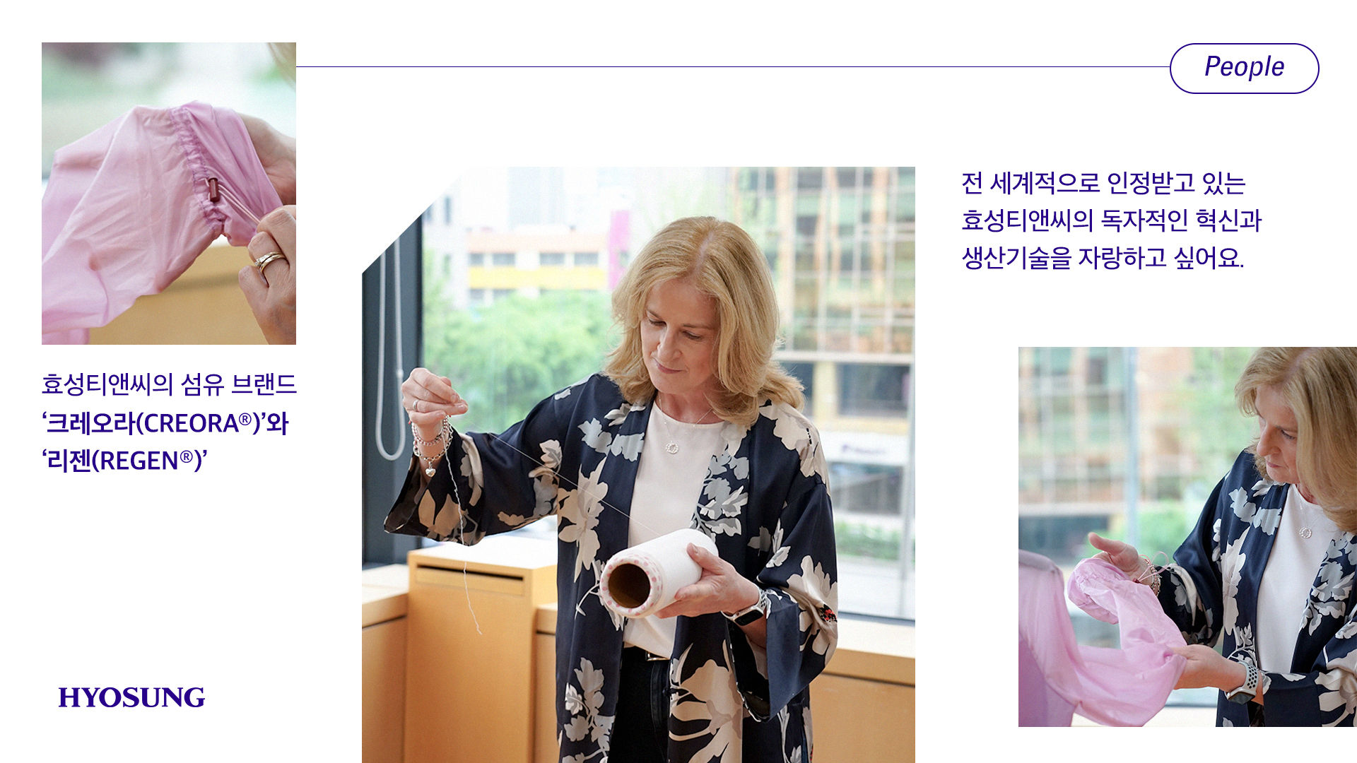 효성티앤씨의 광범위한 섬유 포트폴리오와 독자적인 혁신, 생산 기술 등을 자랑스럽게 생각합니다. (웃음)