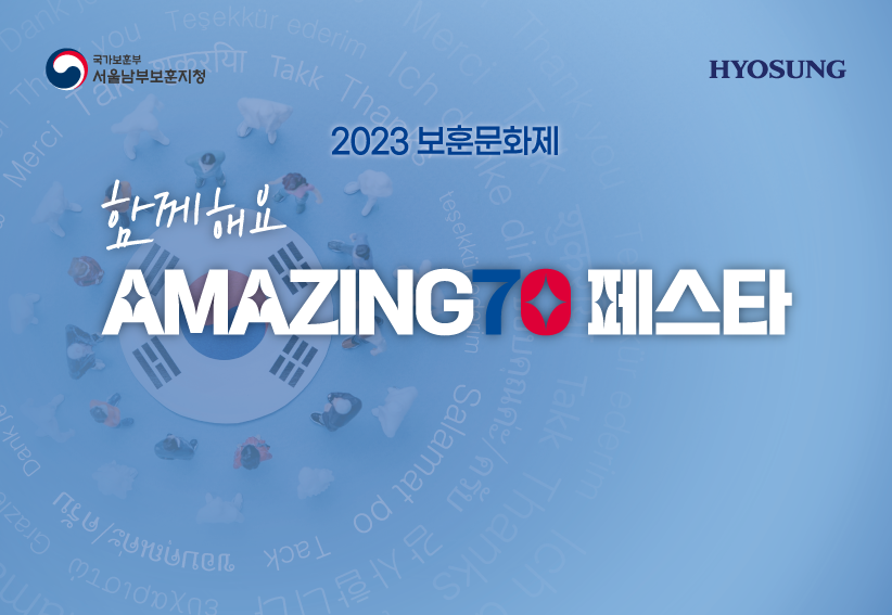 효성이 서울남부보훈지청에서 주관하는 2023 보훈문화제 <함께해요 AMAZING 70 페스타>를 후원합니다.