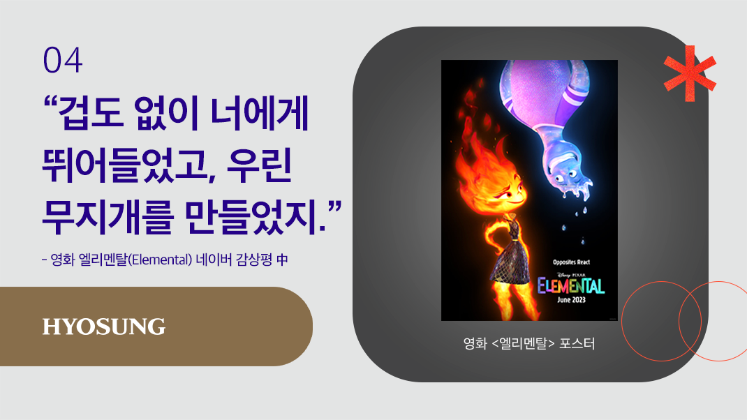 위 감상평은 영화 ‘엘리멘탈(Elemental)’의 네이버 감상평인데요.