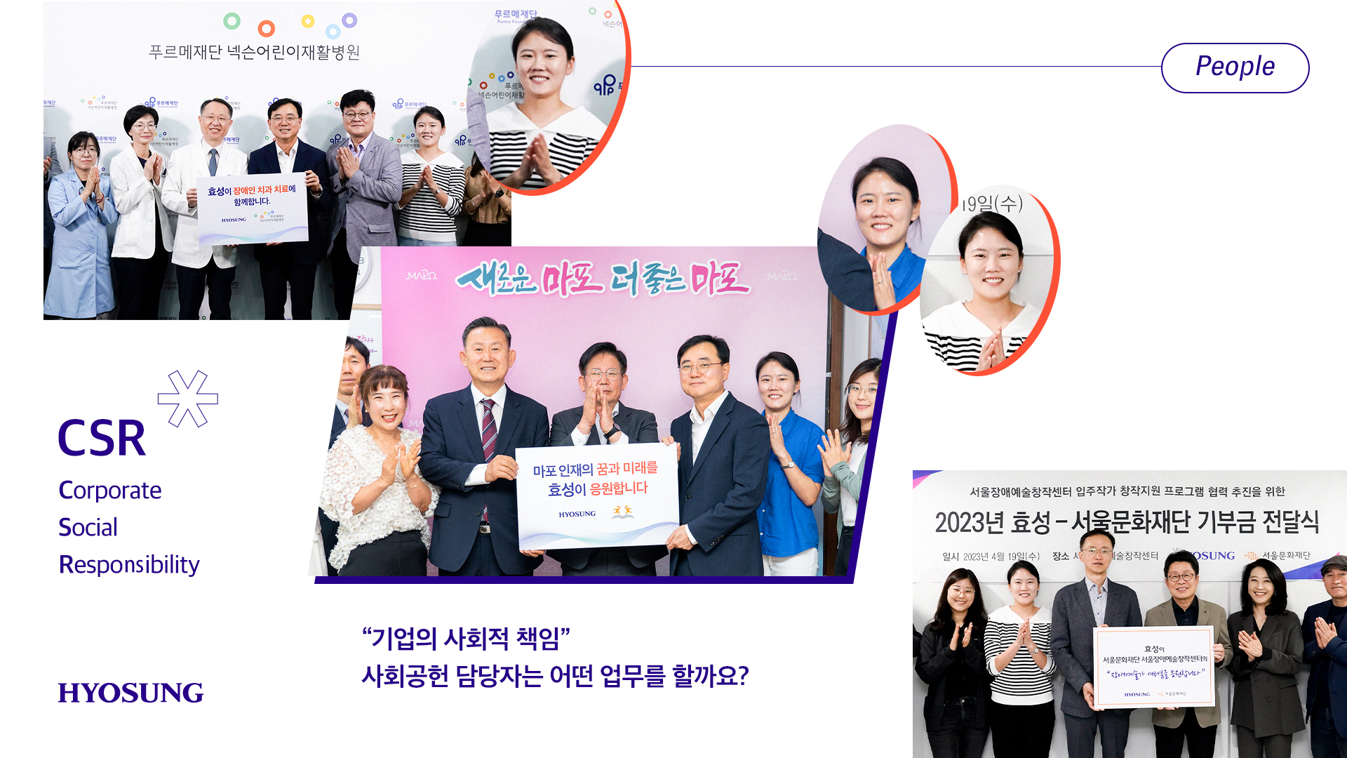 효성의 사회공헌 활동을 진행, 관리하고 홍보하는 역할을 맡고 있어요.