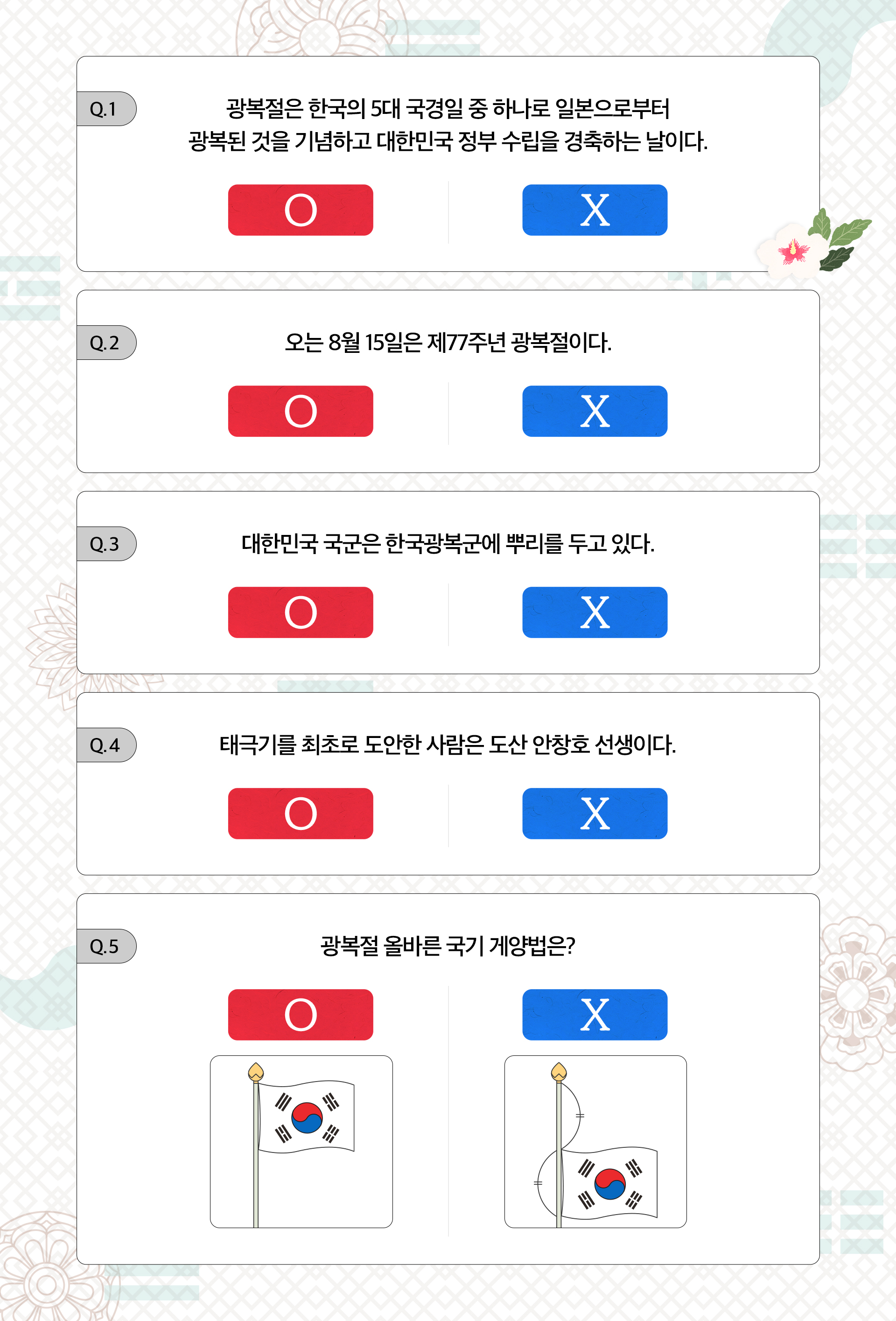 8월 15일 광복절을 맞아 O/X 퀴즈 함께 풀어보며,