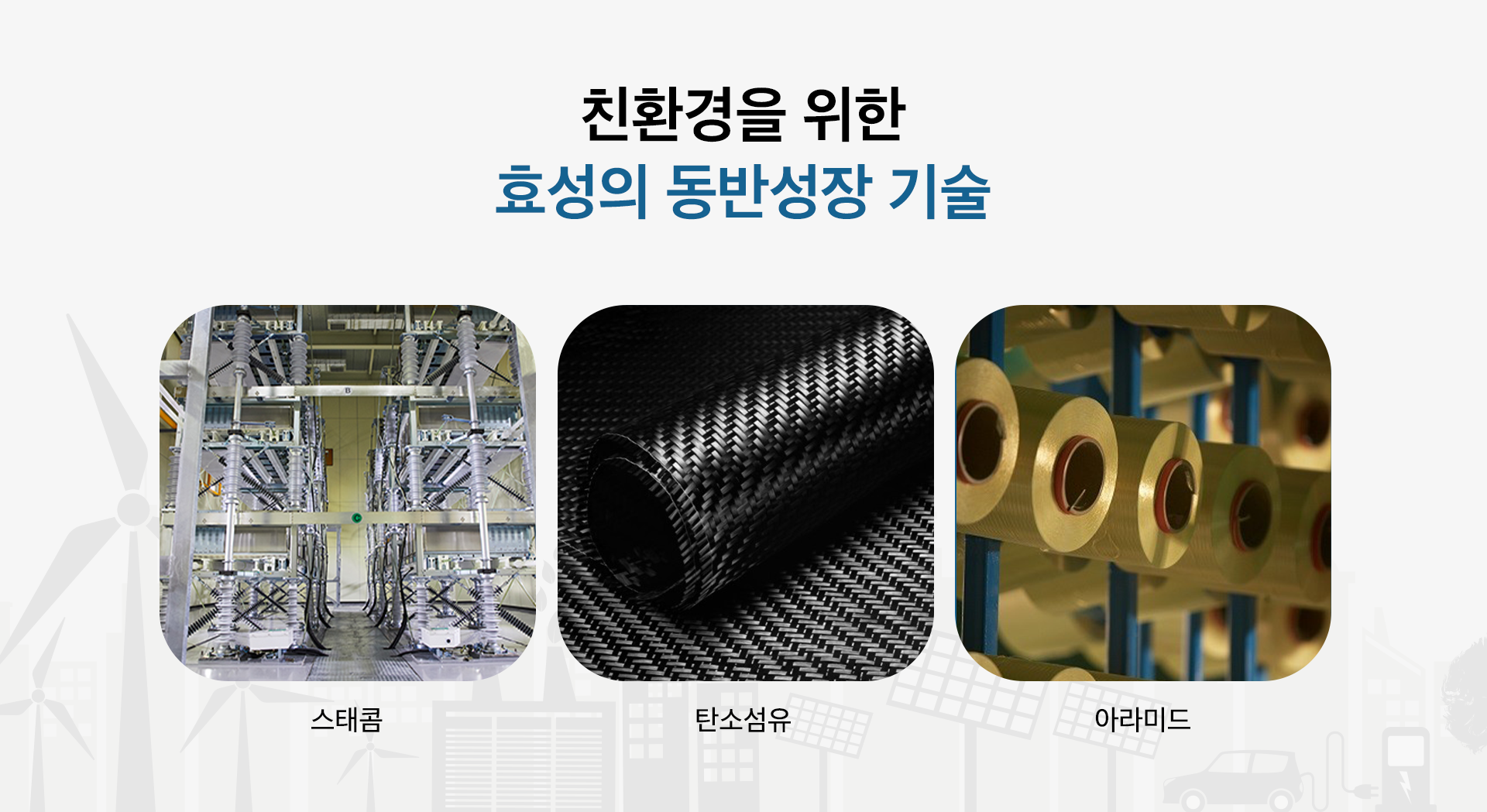 친환경을 위한 효성의 동반성장 기술도 몇 가지 소개해드릴게요.