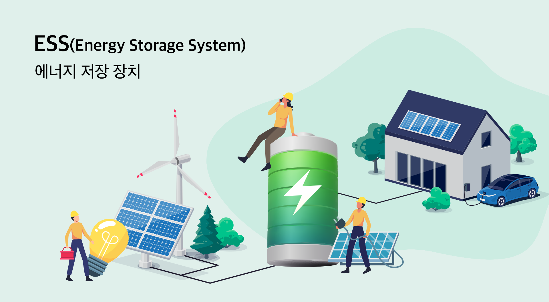 신재생 에너지를 사용하려면, 에너지 저장 장치(ESS)가 필요합니다.
