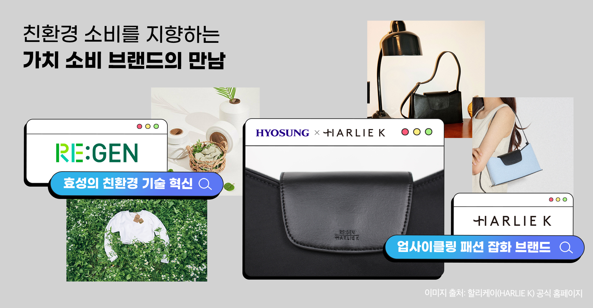 regen 소재 벨류체인, 효성의 친환경 소재 regen으로 만들어진 할리케이의 친환경 제품들을 만나볼 수 있습니다.
