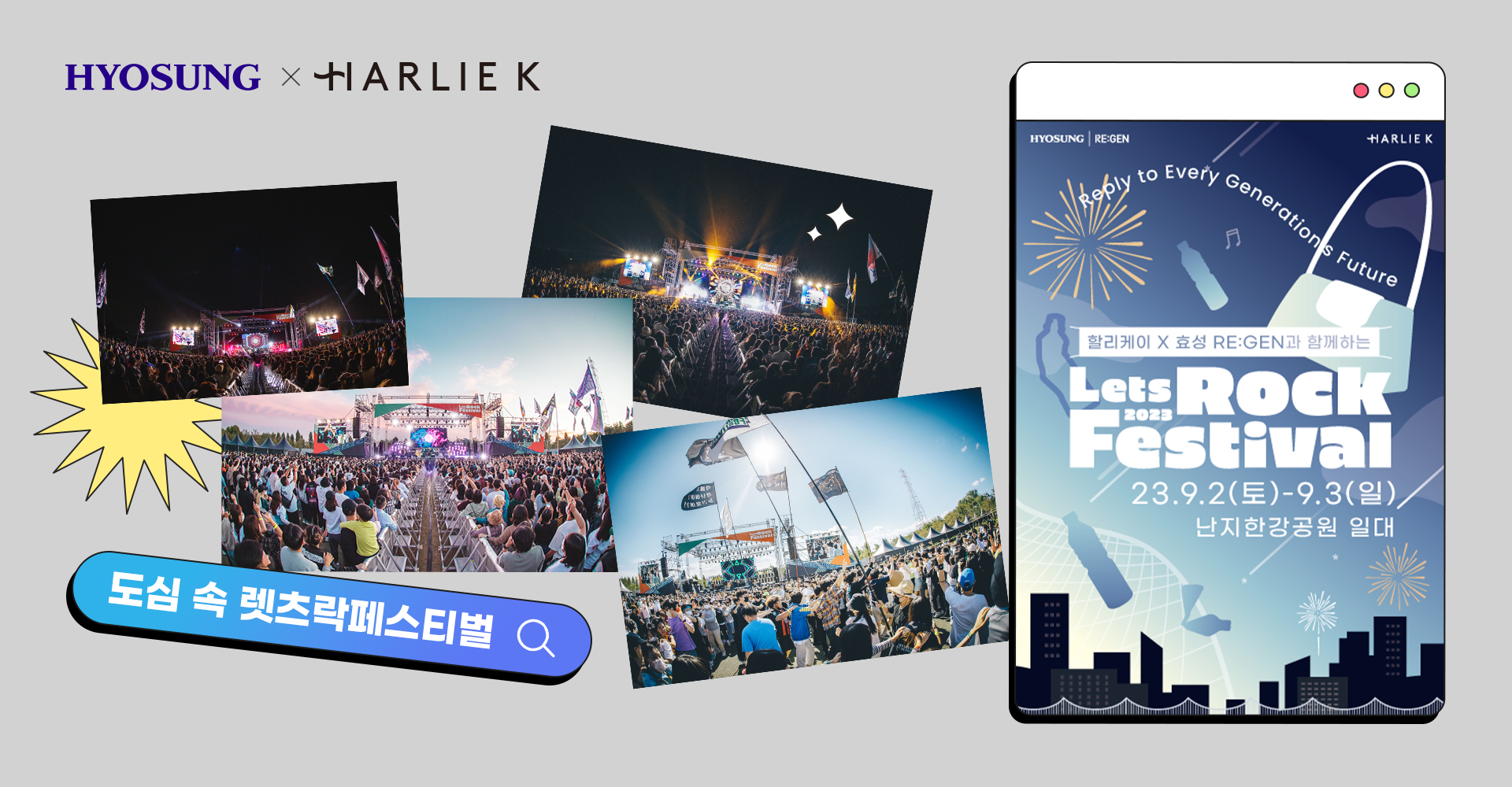 이번 2023렛츠락페스티벌에서는 효성그룹과 친환경 패션브랜드 할리케이가 손잡고