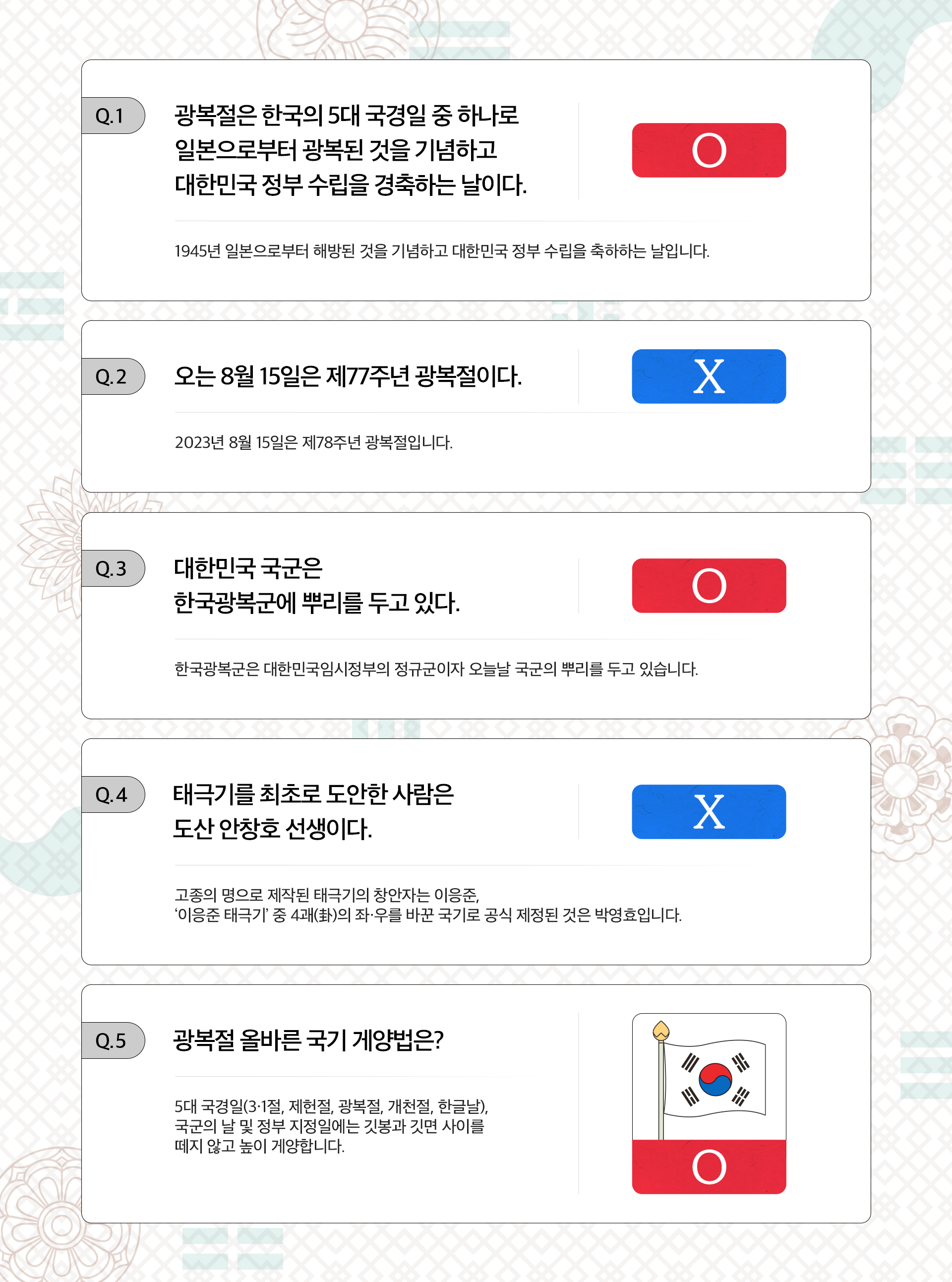 O/X 퀴즈를 푸는 동안 광복절의 의미를 되새기고