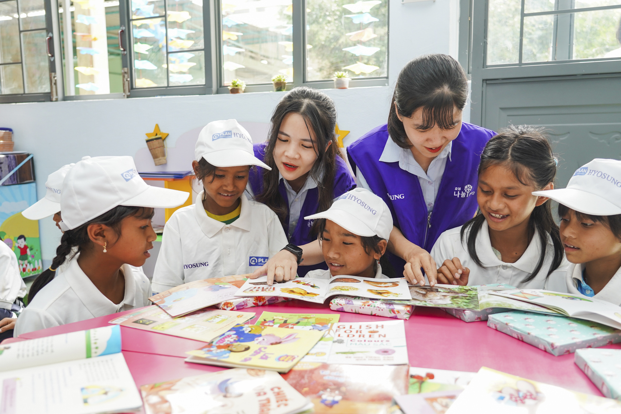 효성은 이런 어려움 극복을 위해 도서관, 도서관 내부 기자재, 배드민턴, 체스 등의 교육용 도구, 도서 450권을 기증했습니다.