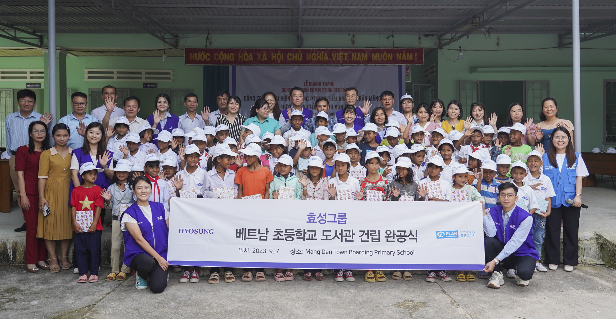 완공식은 효성 광남법인 박찬 법인장, 플랜코리아, 플랜베트남, 망덴 기숙형 초등학교 교사 및 관계자,