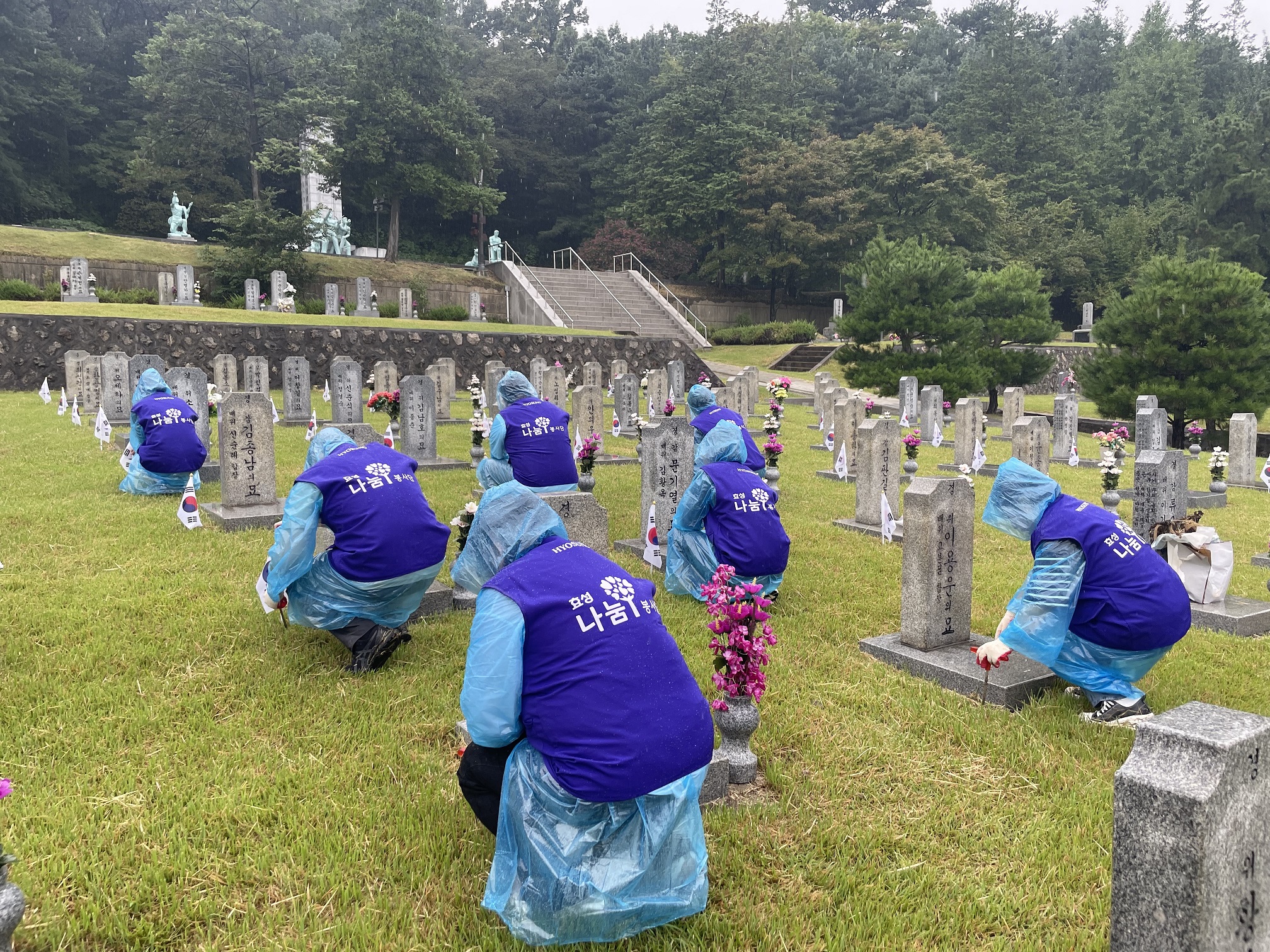 임직원들은 활동에 앞서 현충탑에서 참배를 진행하고 묘비 닦기, 묘역 내 태극기 꽂기, 헌화 활동 등을 펼쳤습니다.