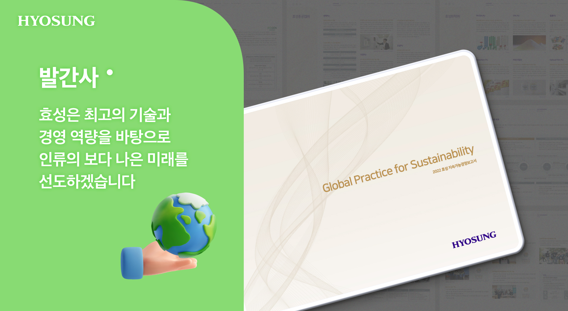 <발간사> 효성은 최고의 기술과 경영 역량을 바탕으로 인류의 보다 나은 미래를 선도하겠습니다.