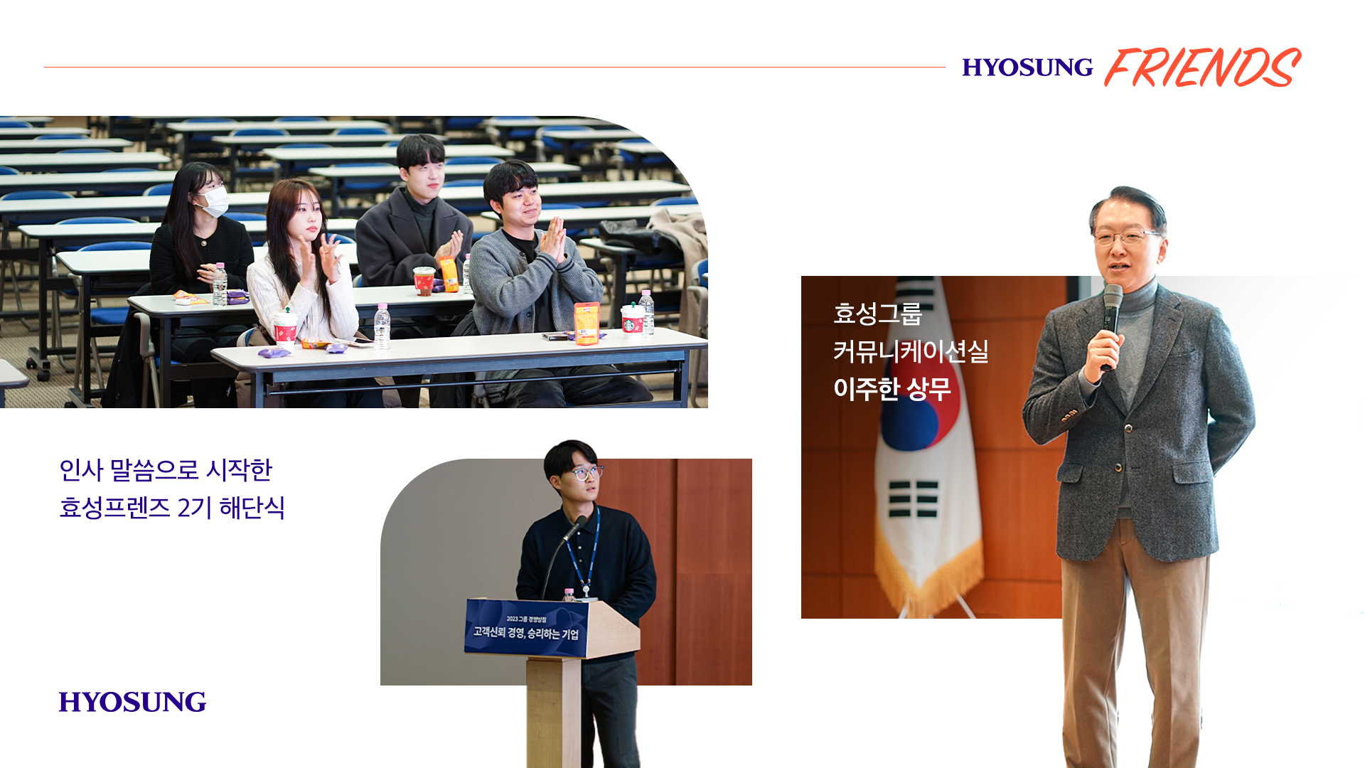 이주한 상무님은 효성프렌즈 2기 활동과 개성이 돋보이는 SNS 콘텐츠 제작에 대해 감사 인사 말씀 전하셨는데요.