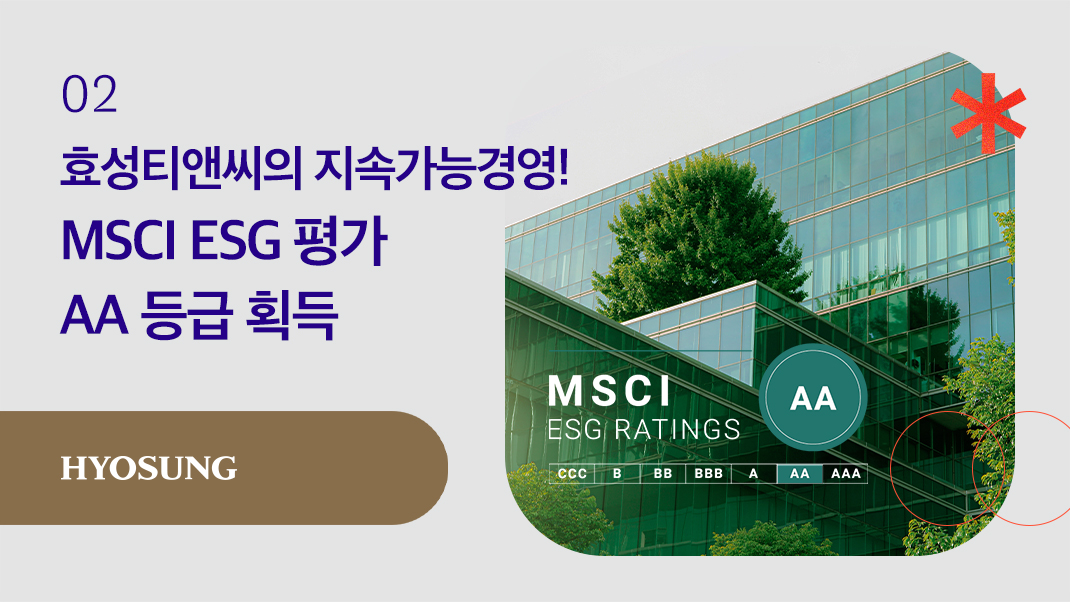 효성티앤씨가 모건스탠리캐피털 인터내셔널(MSCI) ESG 평가에서 AA 등급을 획득했어요! 🌏
