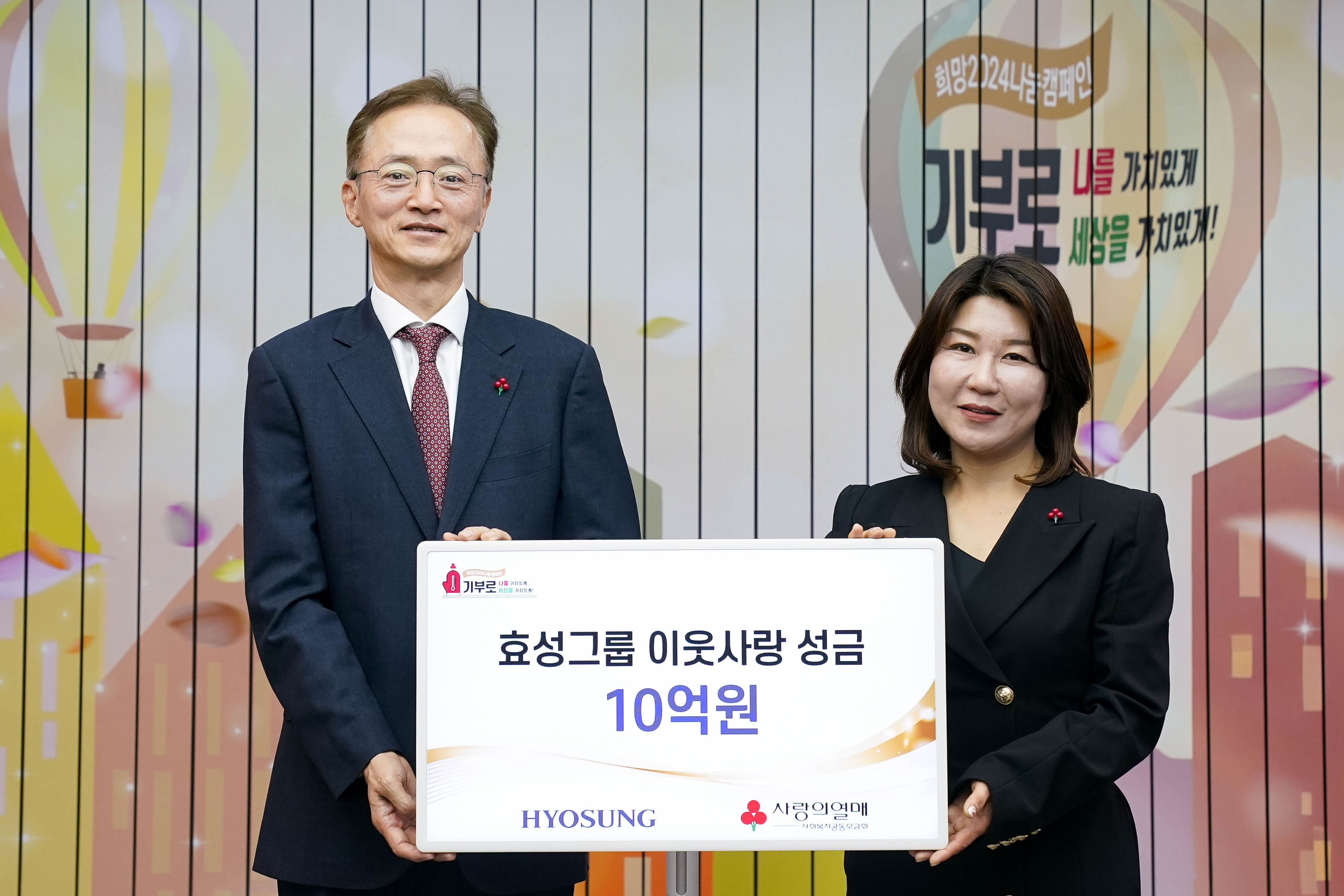 효성그룹은 13일 서울시 중구에 위치한 사회복지공동모금회에서 희망 2024 나눔 캠페인에 성금 10억 원을 전달했습니다.