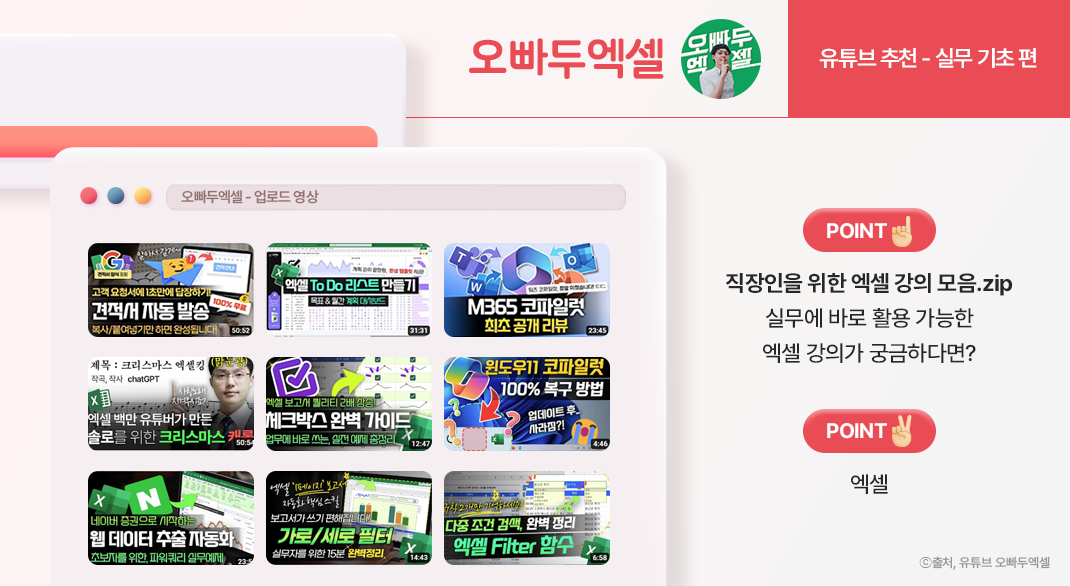 엑셀 마스터, 일잘러가 되는 길 오빠두엑셀로 시작해 보아요!