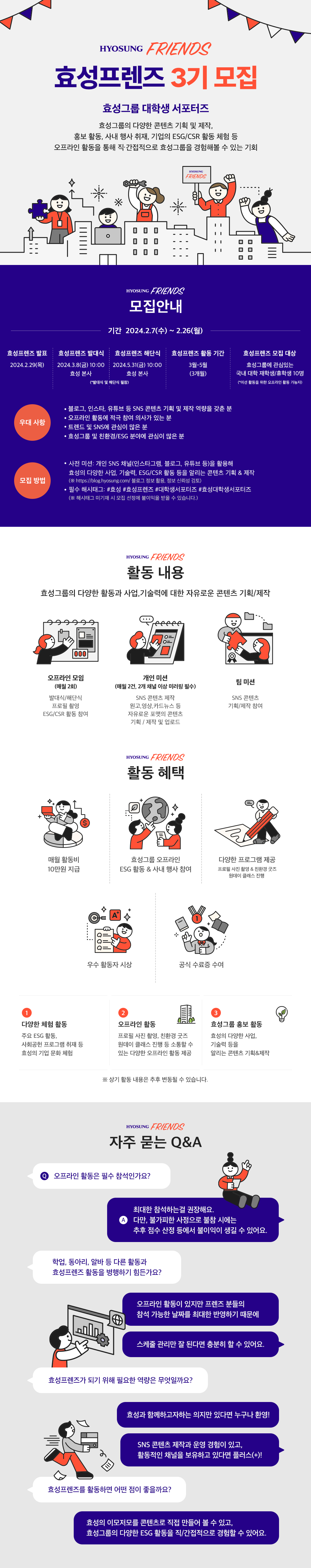 효성그룹의 대학생 서포터즈 '효성프렌즈' 3기에 초대합니다💌