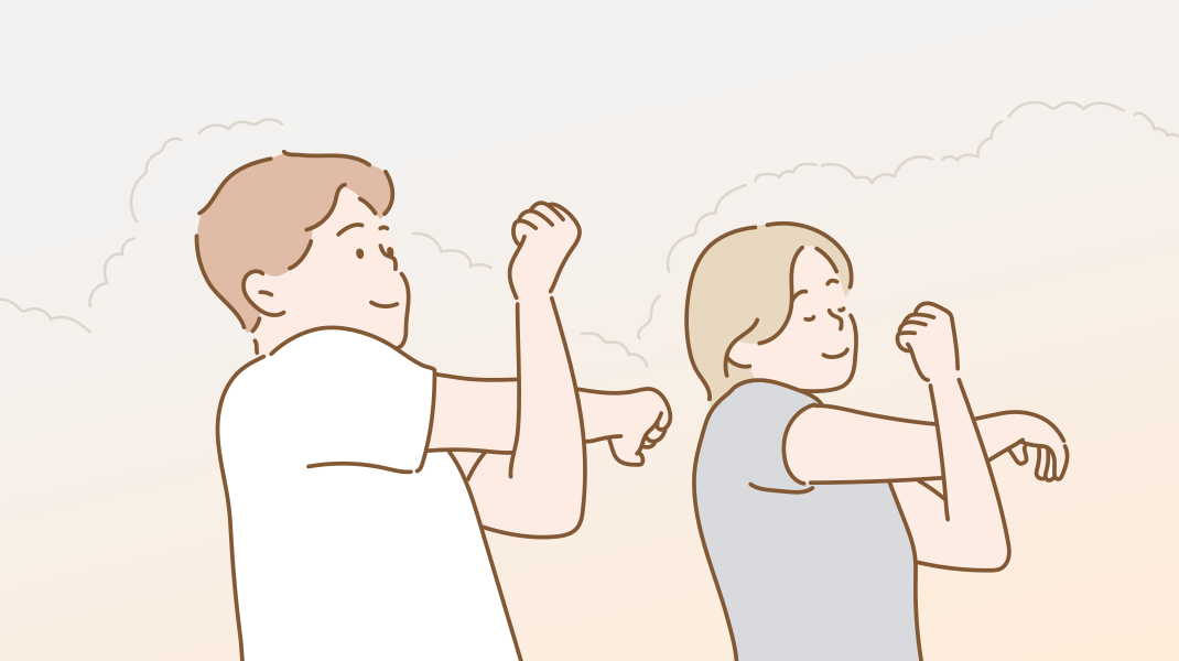 명절 후 심한 피로감이 느껴진다면, 스트레칭을 해보세요. 의자에 앉아 기지개를 피거나, 그림처럼 어깨와 팔을 좌우로 움직이는 동작을 하는 등 회사에서도 간단히 할만한 스트레칭이 많답니다. 피곤하다고 누워만 있게 되면, 몸의 피로감은 더 심해질 수 있어요. 충분한 휴식도 중요하지만, 낮 시간에는 적절히 몸을 움직여 주는 것이 좋습니다.