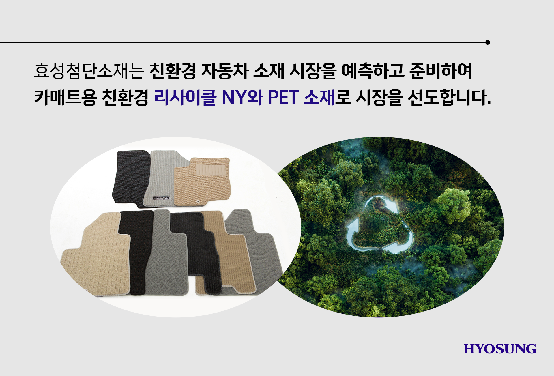 효성첨단소재의 카매트는 자동차의 철제 프레임 위에 맞춰 성형하는 플로어 매트로,
