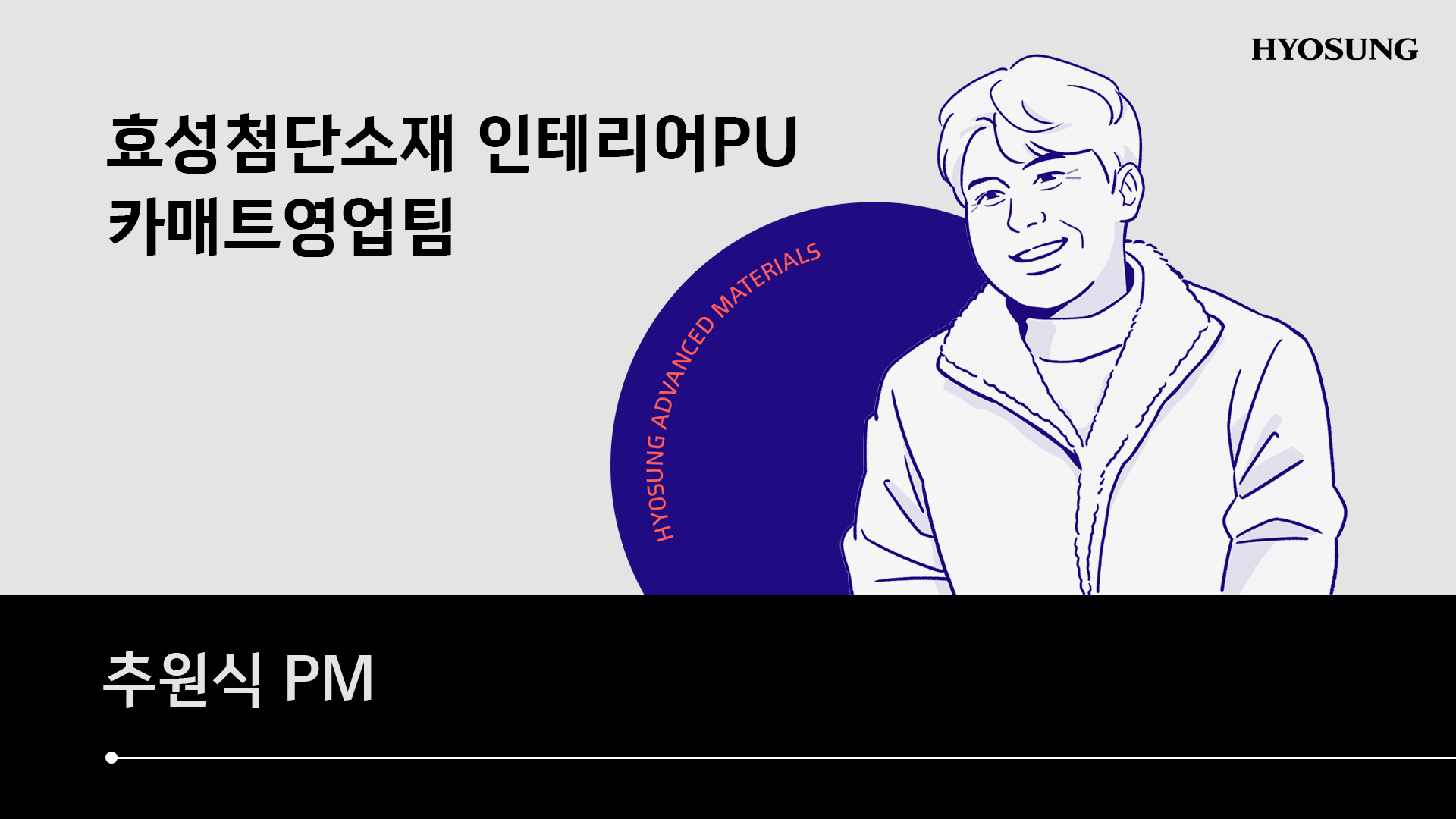 안녕하세요. 저는 효성첨단소재 인테리어PU 카매트영업팀의 추원식 PM입니다.