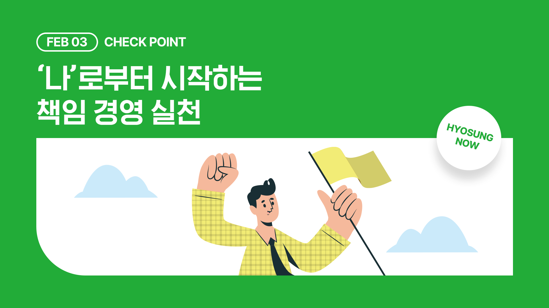 성장과 성공은 하루아침에 이뤄지는 것이 아니라 꾸준함을 발판 삼아 실현된다고 믿어요. 때로는 실패를 통해 한 뼘 더 성장하기도 하고, 실패를 두려워하지 않고 끊임없이 도전을 이어갈 때 각자의 역할에 대한 신념과 책임감도 강해질 수 있어요. 그렇게 도전 정신을 통해 효성은 책임 경영에 좀 더 가까워질 것이에요.