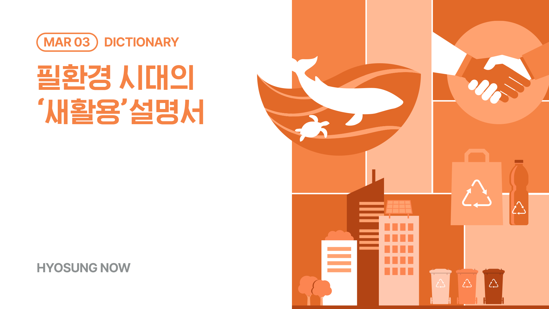 이번 HYOSUNG NOW에서는 필환경 시대가 무엇인지부터 시작해, 필환경 시대의 ‘새활용 설명서’를 차근히 알려드리려고 합니다-!