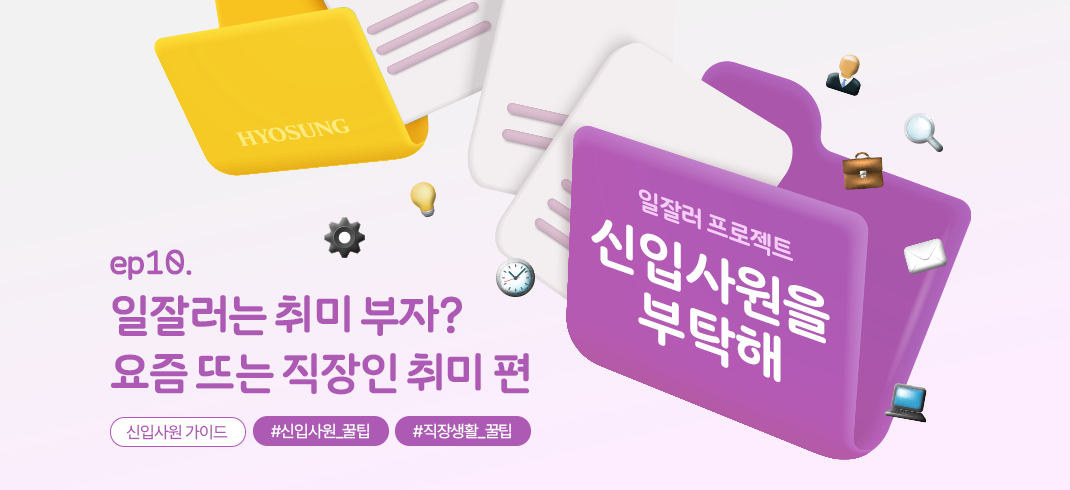 여러분이 '일잘러 프로젝트' 콘텐츠를 발판 삼아 자신만의 취미를 찾은 뒤, 앞으로의 개인 시간 동안에는 스트레스 해소와 자기 계발을 이루게 되길 효성이 늘 함께하겠습니다!