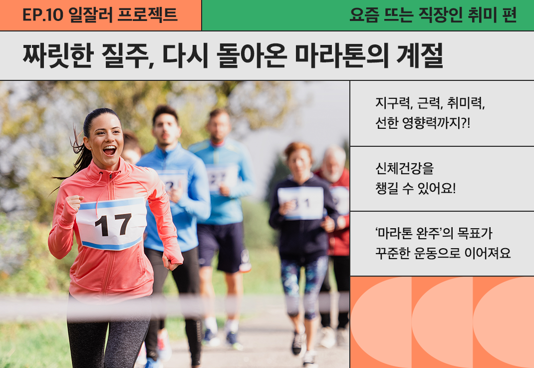 - 지구력, 근력, 선한 영향력, 취미력 모두 다 잡을 수 있는 마라톤
