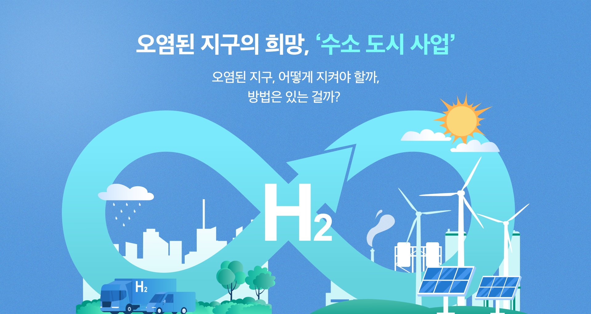 오염된 지구, 어떻게 지켜야 할까요? 방법은 있는 걸까요? 지속가능한 지구 만들기를 위한 다양한 정책이 세계적으로 시도되는 가운데, 우리 정부도 ‘수소 도시 사업’을 시행하고 있습니다.