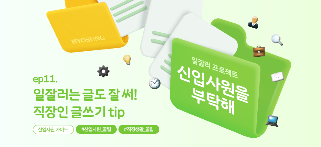 여러분도 이런 부분을 잘 기억해서 일도 잘 하고, 글도 잘 쓰는 일잘러가 되길 ‘일잘러 프로젝트’를 통해 효성이 늘 좋은 인사이트 공유해드릴게요!