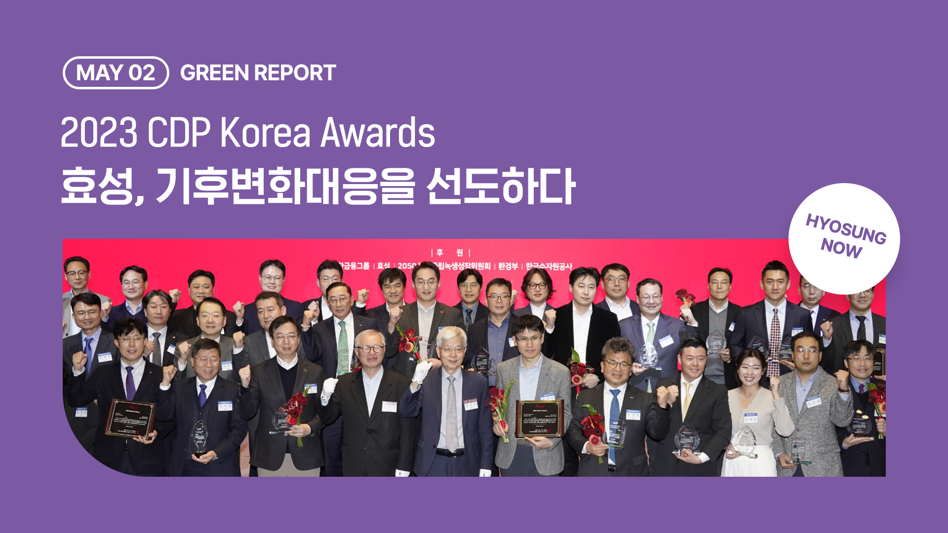 효성화학은 ‘2023 CDP Korea Awards’에서 기후변화대응(Climate Change) 부문의 ‘탄소경영 섹터 아너스(Carbon Management Honors)’를 수상했는데요.