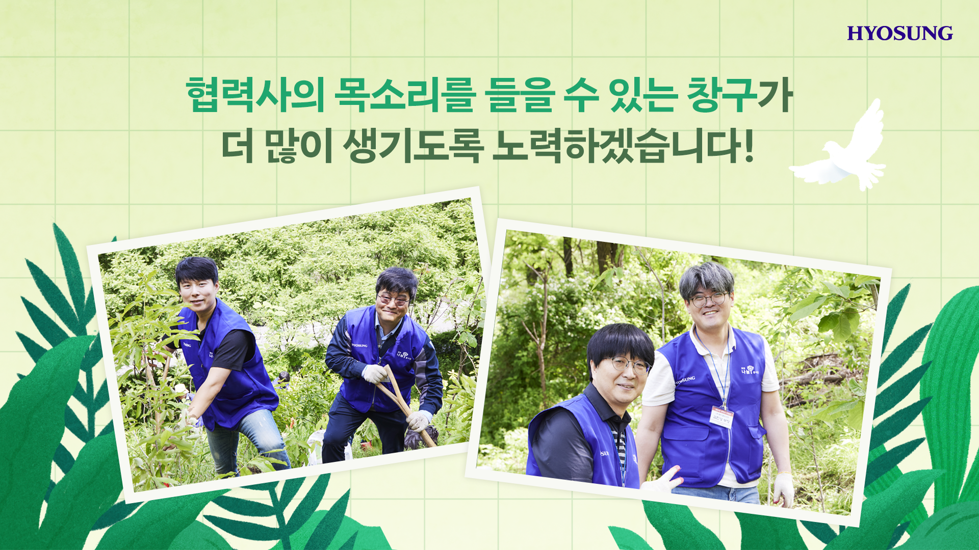 서로의 목소리를 들을 수 있는 창구가 더 자주, 많이 생길 수 있도록 효성중공업은 앞으로도 다양한 동반성장 지원 활동을 고민할 계획입니다.