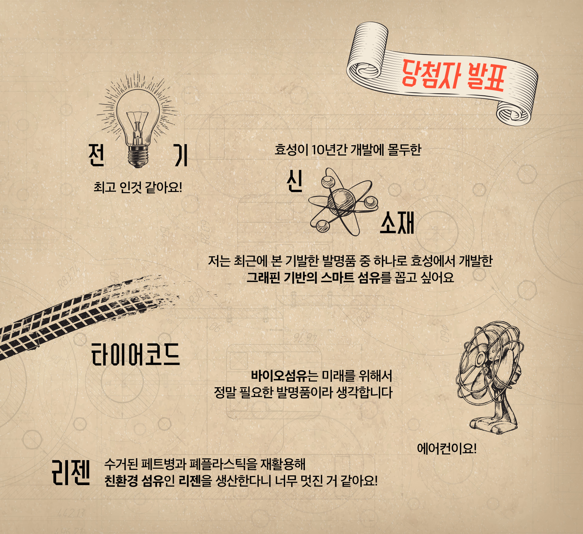 특히나 효성의 발명품을 언급해 주신 분들이 많았는데요! 덕분에 큰 힘 얻을 수 있었어요.