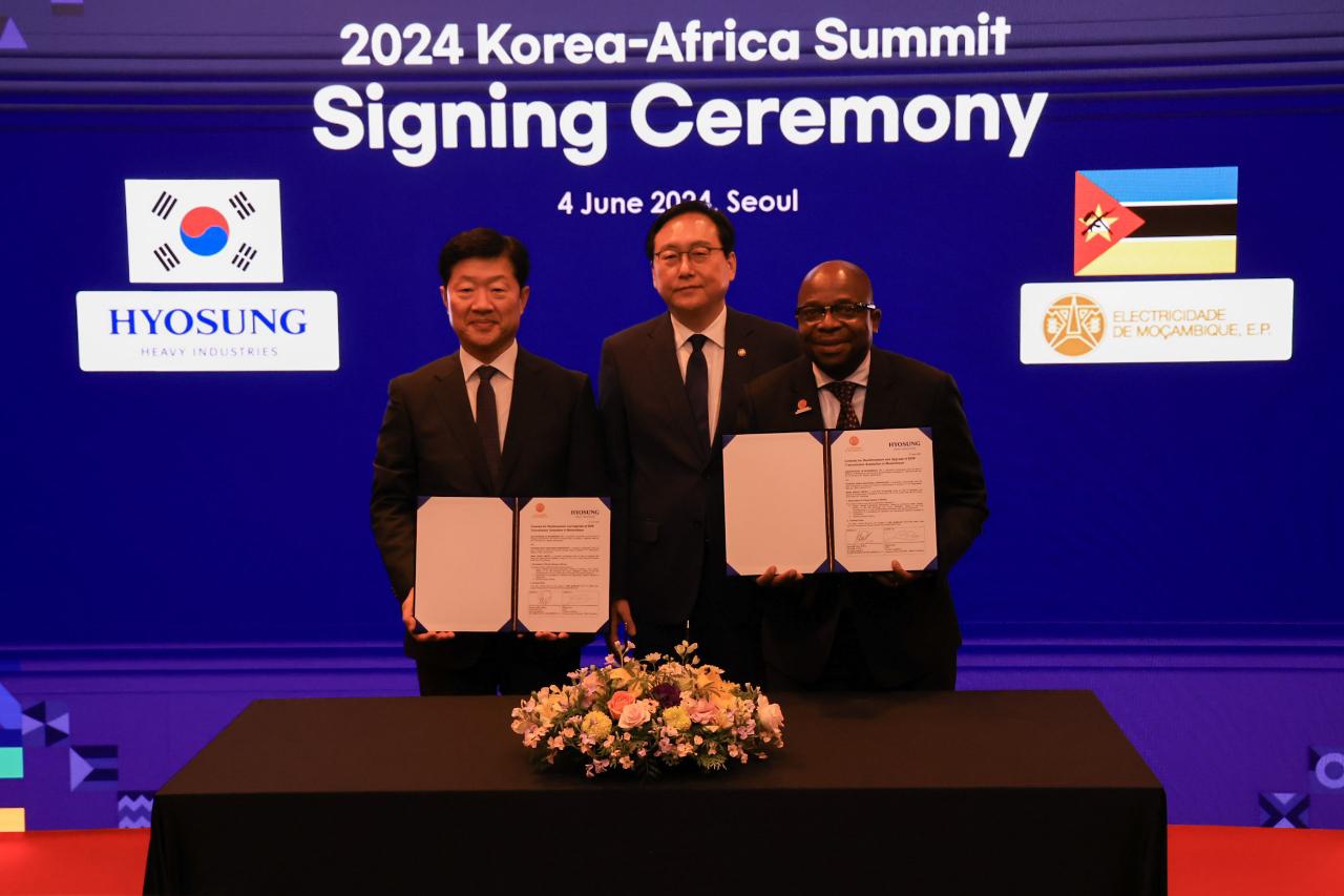 효성중공업은 6월 4일 서울 강남구 인터컨티넨탈 서울 코첵스 호텔에서 열린 ‘2024 한-아프리카 비즈니스 서밋’에서 모잠비크 국영 전력청인 EDM과 총 428억원 규모의 모잠비크 전력망 강화 사업에 대한 계약체결식 행사를 가졌습니다.