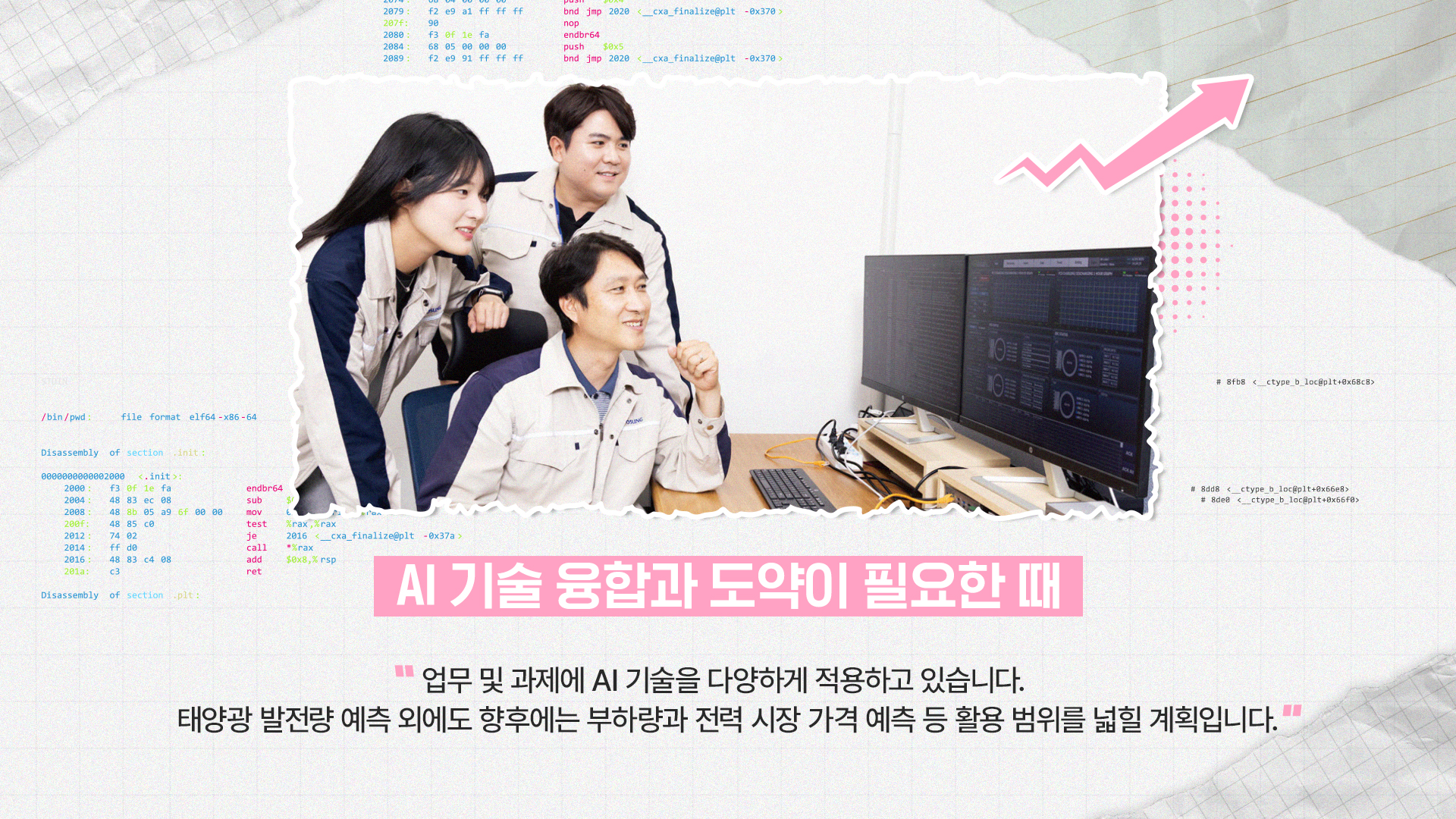 “업무 및 과제에 AI 기술을 다양하게 적용 하고 있습니다. 태양광 발전량 예측 외에도 향후에는 부하량과 전력 시장 가격 예측 등 활용 범위를 넓힐 계획입니다.”