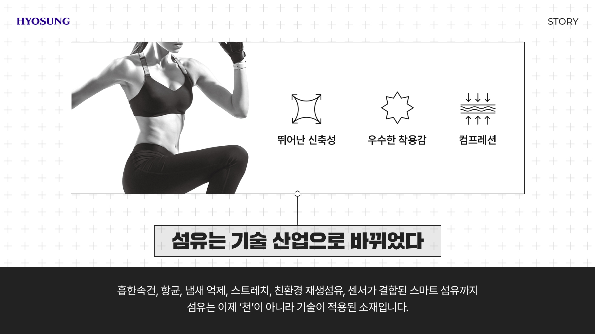 흡한속건, 항균, 냄새 억제, 스트레치, 친환경 재생섬유, 센서가 결합된 스마트 섬유까지