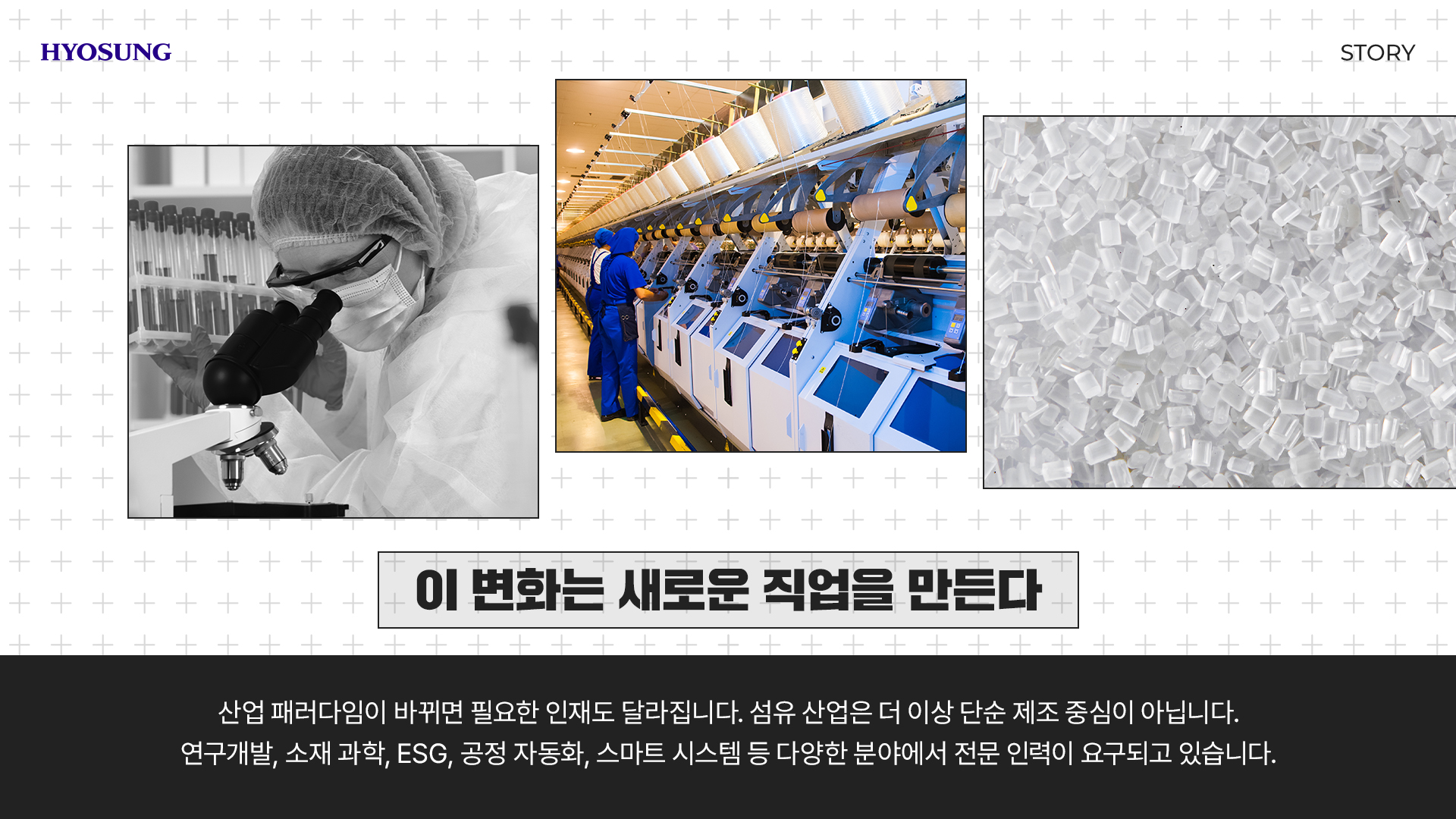 섬유의 본질은 여전히 ‘사람이 입는 것’입니다. 하지만 그 안에는 더 나은 기술, 환경, 윤리, 창의성이 담겨 있는데요. 그리고 그 변화의 중심에는 끊임없이 연구하고, 개선하며, 함께 성장하는 사람들이 있습니다. 효성티앤씨는 바로 그 변화의 한가운데에서 K-섬유의 미래를 만들어가고 있습니다.