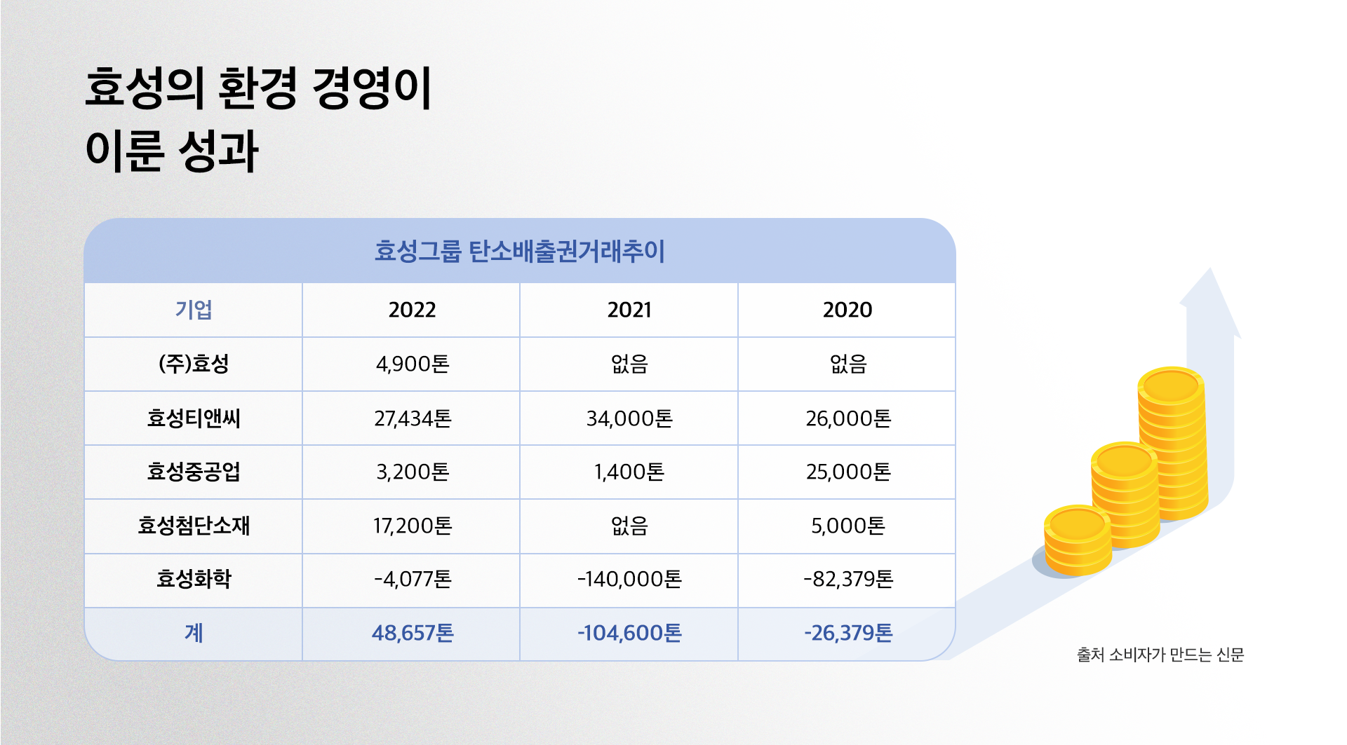 효성은 2020년과 2021년 각각 8만 2379톤, 14만 톤의 탄소배출권을 구입해 왔는데요.